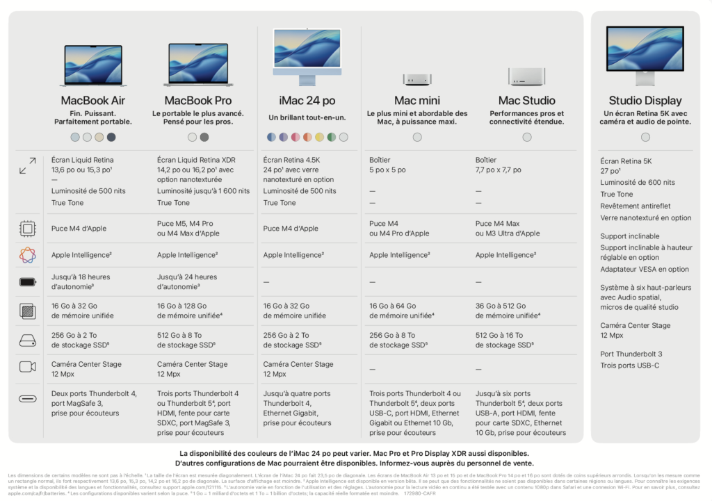 A4 Graphic - Mac Compare Chart - French / A4 Graphique - Image de comparaison des produits Mac en français