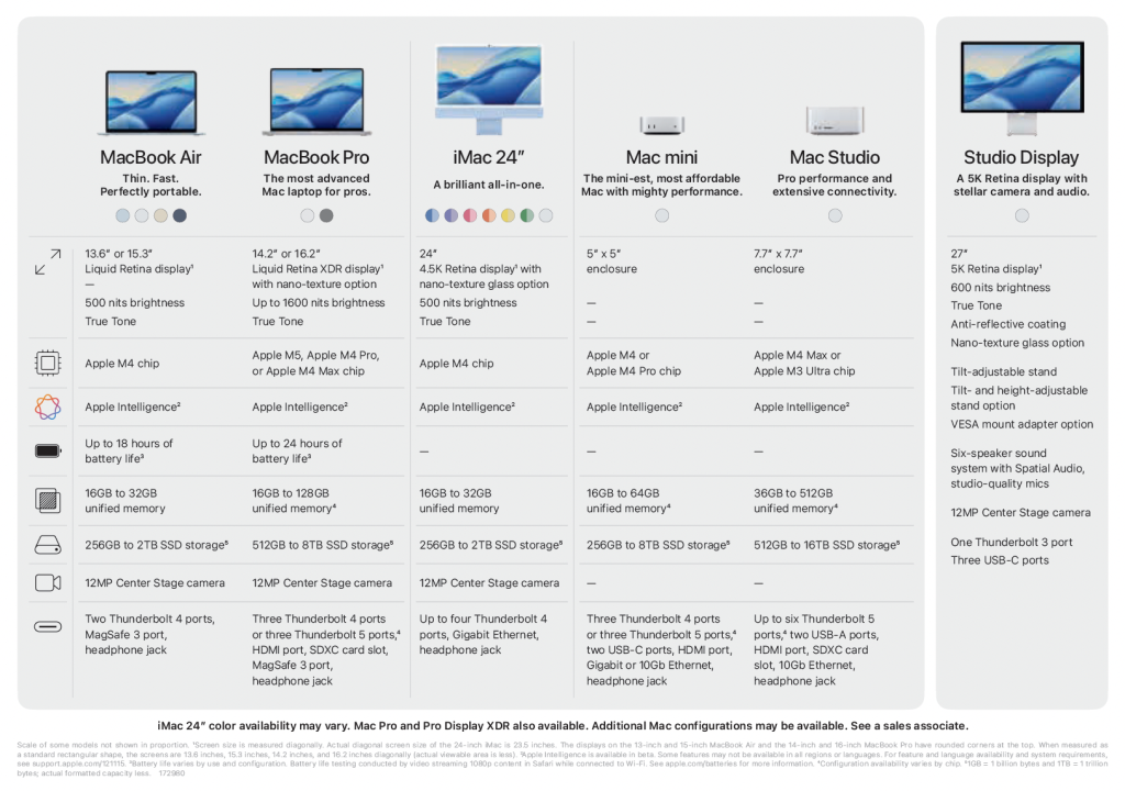 A4 Graphic - Mac Compare Chart - English / A4 Graphique - Image de comparaison des produits Mac en anglais